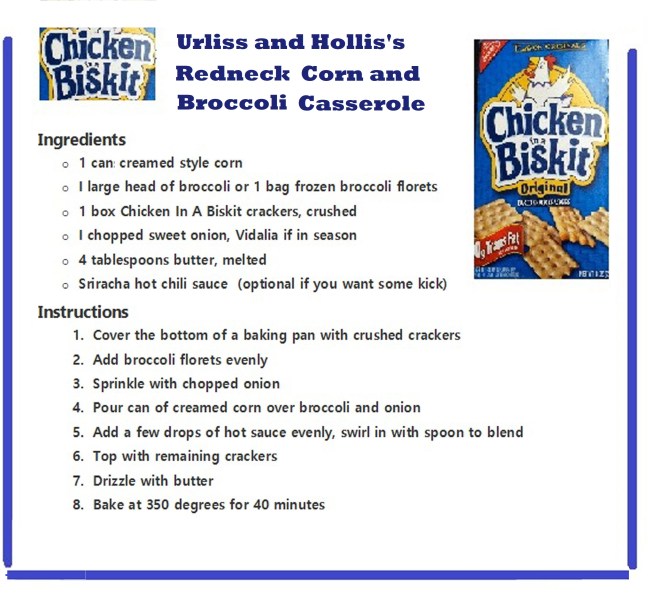 Urliss and Hollis’s Chicken In a Biskit “Redneck Corn and Broccoli Casserole”