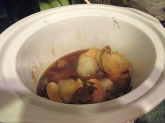 Some of my guests have requested paleo meals. I spotted a recipe in the  Idiot’s Guide: Paleo Slow Cooking by Molly Pearl (see link below) that sounded interesting and gave it a whirl… I didn’t have bay leaves or shallots, so I used fresh chives, and also added some dried lemon flakes just because I had them and thought it would be interesting. I added the cinnamon a bit late… my tastebuds aren’t very strong, so I’d go more heavy-handed… might also add some cardamom.  If you really hate the taste of anise or licorice, you probably won’t like to cook with fennel… but I thought the combination was subtle and delicious over Jerusalem artichoke angel hair.