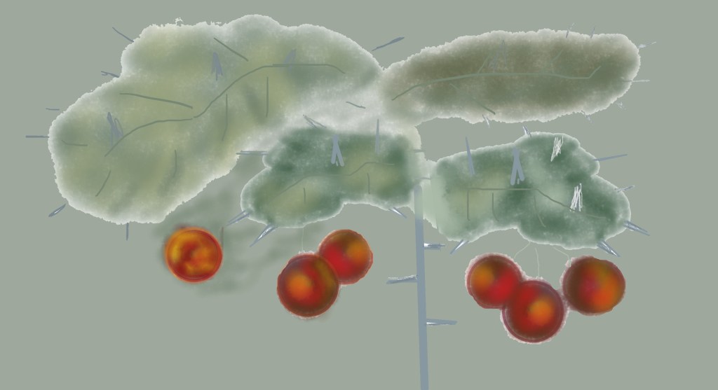 Devil tomato plant sketch from memory as I couldn’t find one to photograph at the time of this post